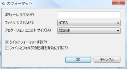 ここで、どうもNTFS形式でフォーマットしていないと怒られるらしいので、フォーマットします。