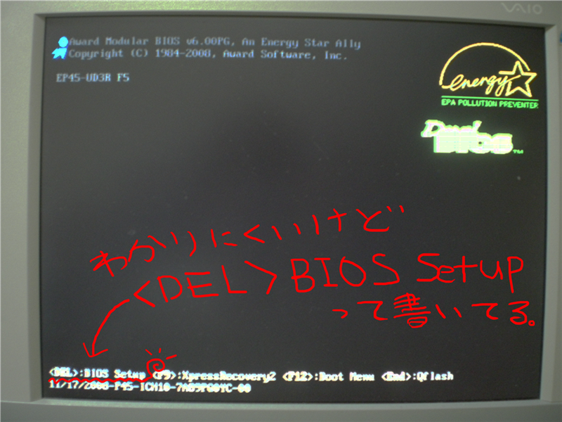 ちなみに自分(自作PC)は[Delete]、知人の既製品は[F2]のものと[F8]のものがありました。