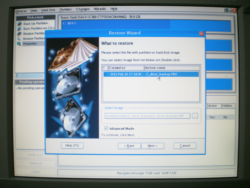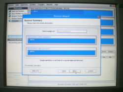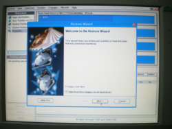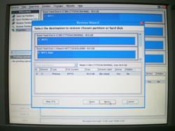 どのハードディスクの、どのパーティションに復元するかを選んで「Next」をクリック。