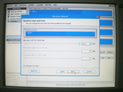 パーティションのサイズが変更できます。が、今回は特に変更する必要もないのでそのまま「Next」をクリック。