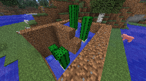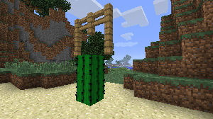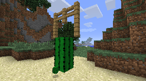 それから、サボテンは「砂ブロックの上に生えて、3ブロック分まで成長する」決まりがあります。(回りに水が必要だったりはない。)